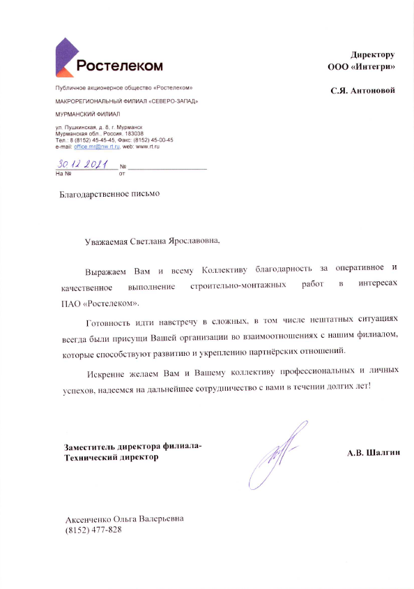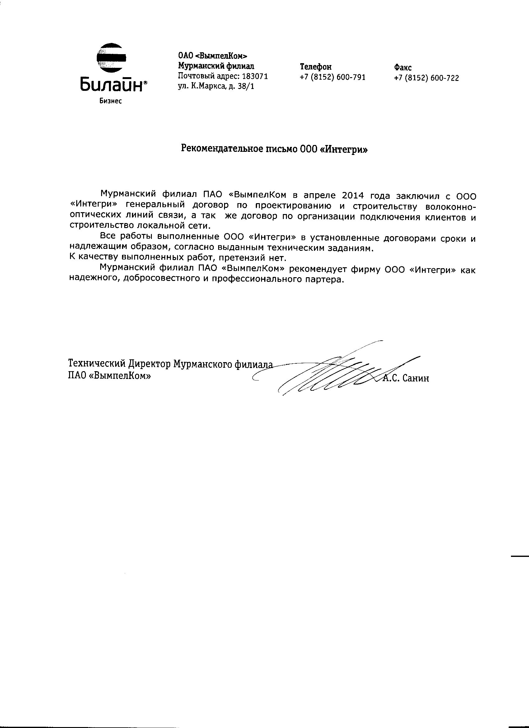Компания ООО «Интегри» была создана в 2012г. Основным направлением деятельности является проектирование и строительство ВОЛС, СКС, ЛВС, БШПД, Wi-FI сетей в интересах операторов связи, государственных и коммерческих заказчиков.